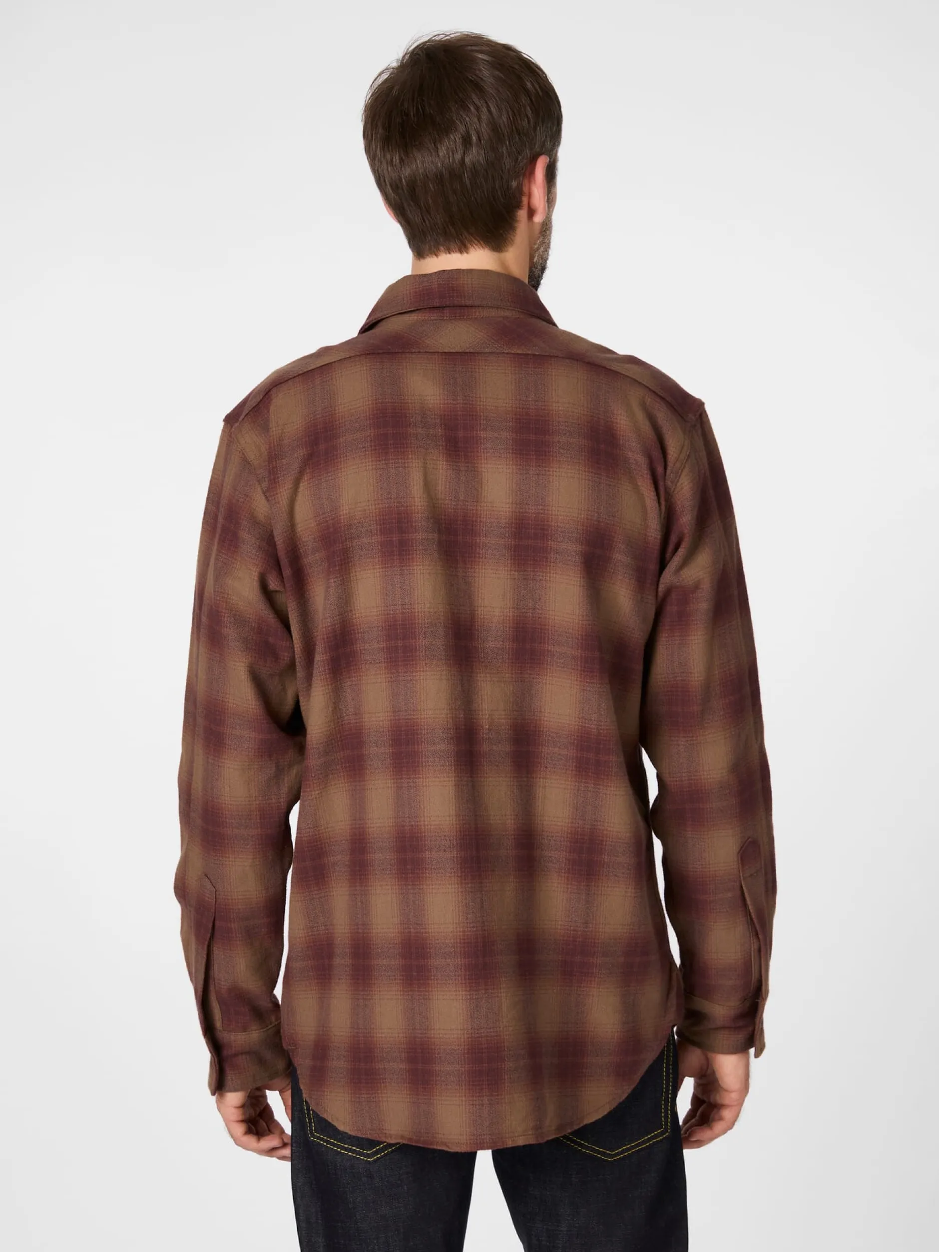 In großflächigem Karo gemustertes Hemd aus weichem, wärmendem Baumwollflanell. Sein Schnitt bietet Bewegungsfreiheit, die geräumigen Brusttaschen mit geknöpften Patten nehmen unverzichtbare Kleinteile des täglichen Bedarfs auf. Das Hemd ist mit Kentkragen gearbeitet, an den Taschen liegt das Karomuster diagonal.