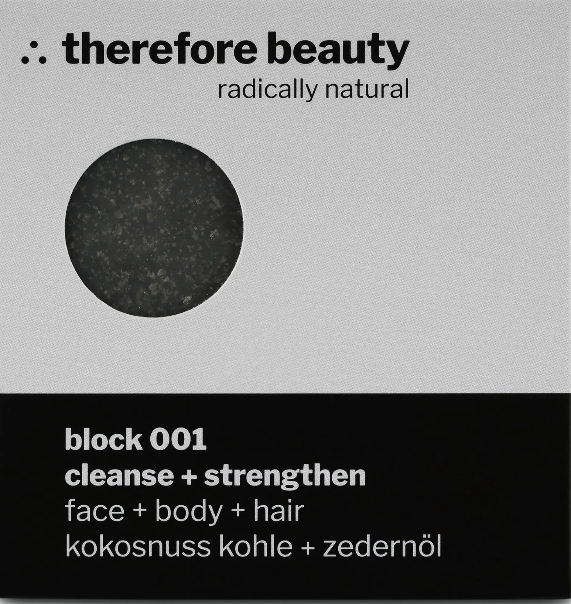 Block 001 schenkt dem Haar mit der Kraft von Zedernöl Stärke und Volumen. Die Kokosnusskohle reinigt die Haut porentief und reguliert die Talgproduktion.