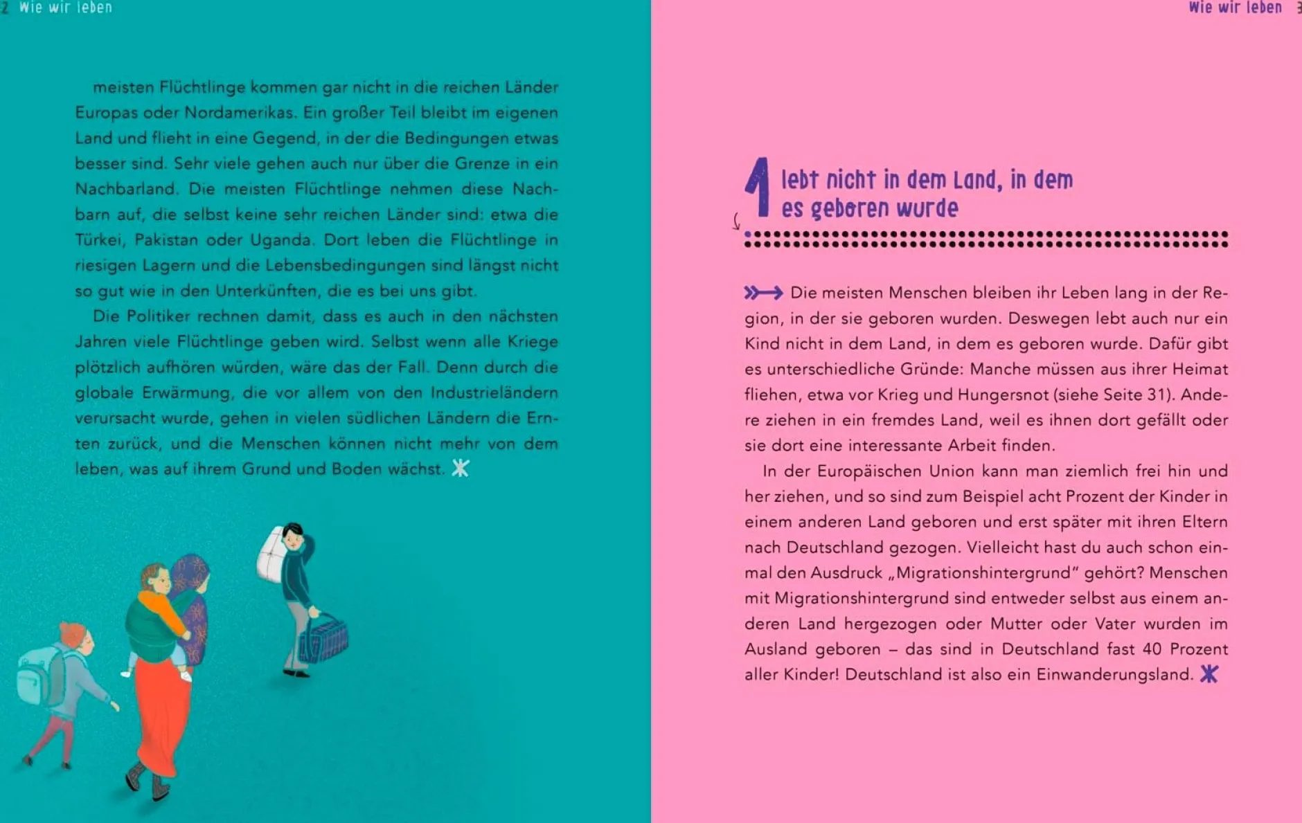 Verblüffend, wie die Welt aussieht, wenn wir das Leben von 100 Kindern betrachten, die für die zwei Milliarden Kinder auf der Erde stehen. Ihr Alltag auf verschiedenen Kontinenten, in unterschiedlichen Religionen, fremden Ländern und Kulturen wird anhand statistischer Zahlen für Kinder verständlich erklärt und im Infografik-Stil anschaulich bebildert.