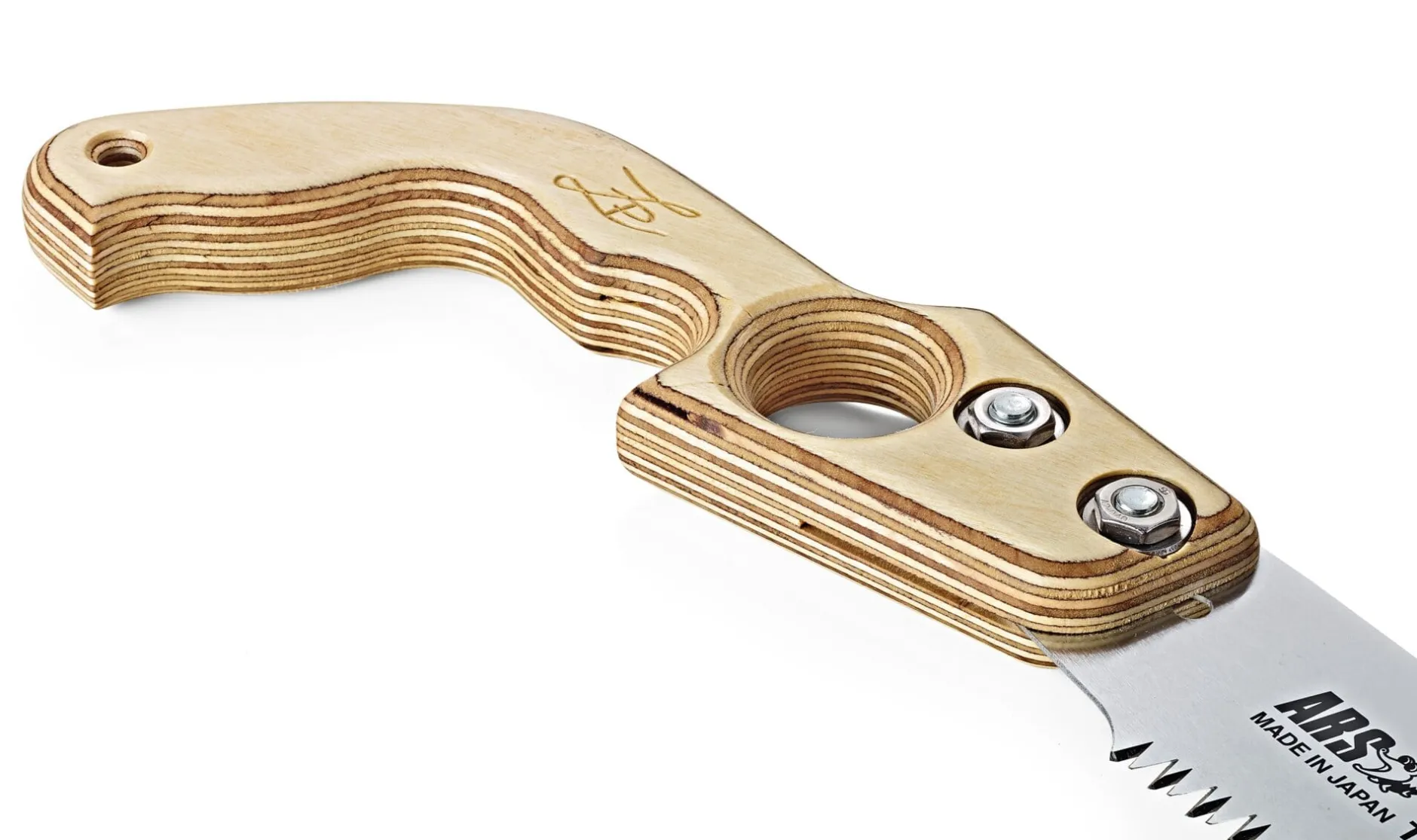 Sägeblatt aus Kohlenstoffstahl, hartverchromt. Griff aus Birkenschichtholz, geölt. Hergestellt in Japan.
