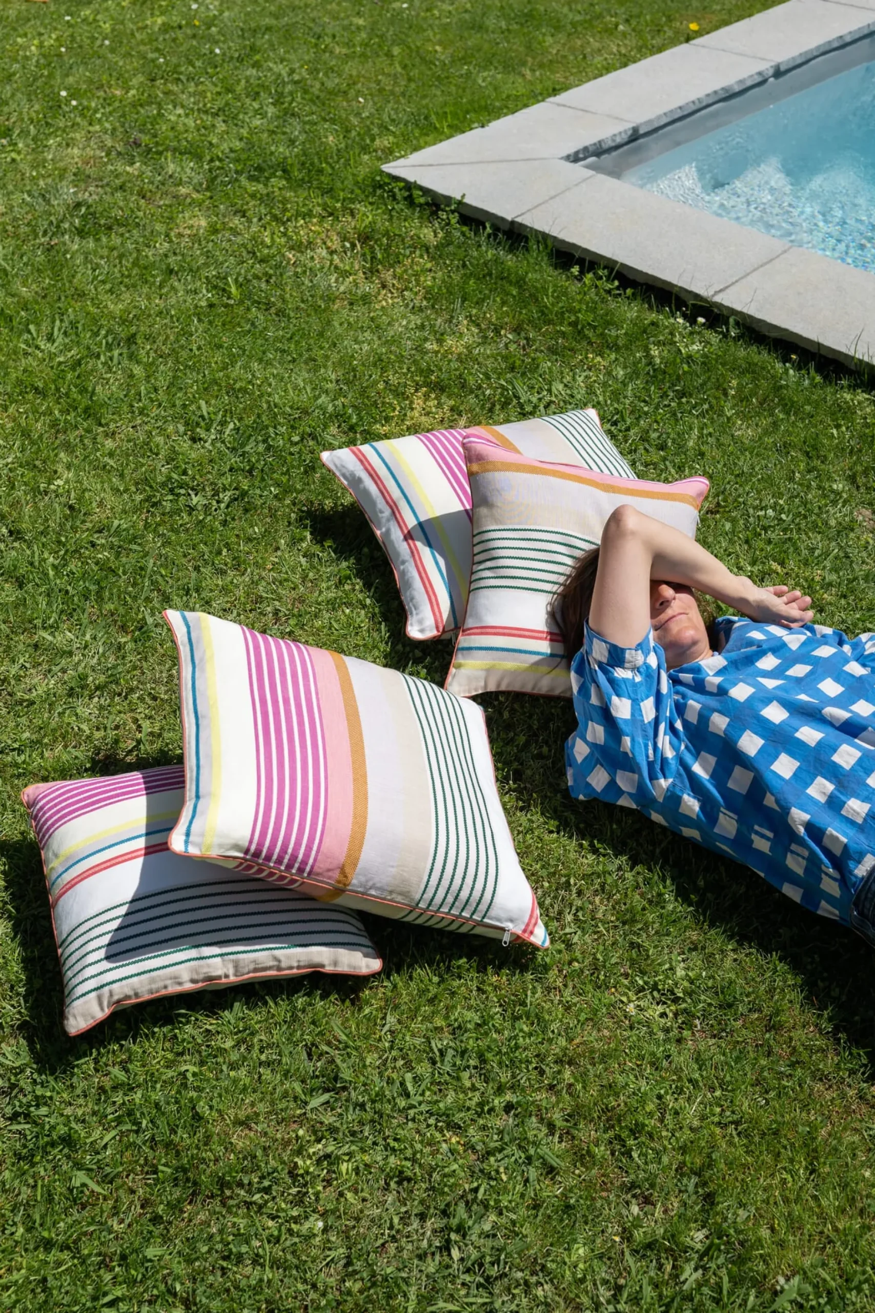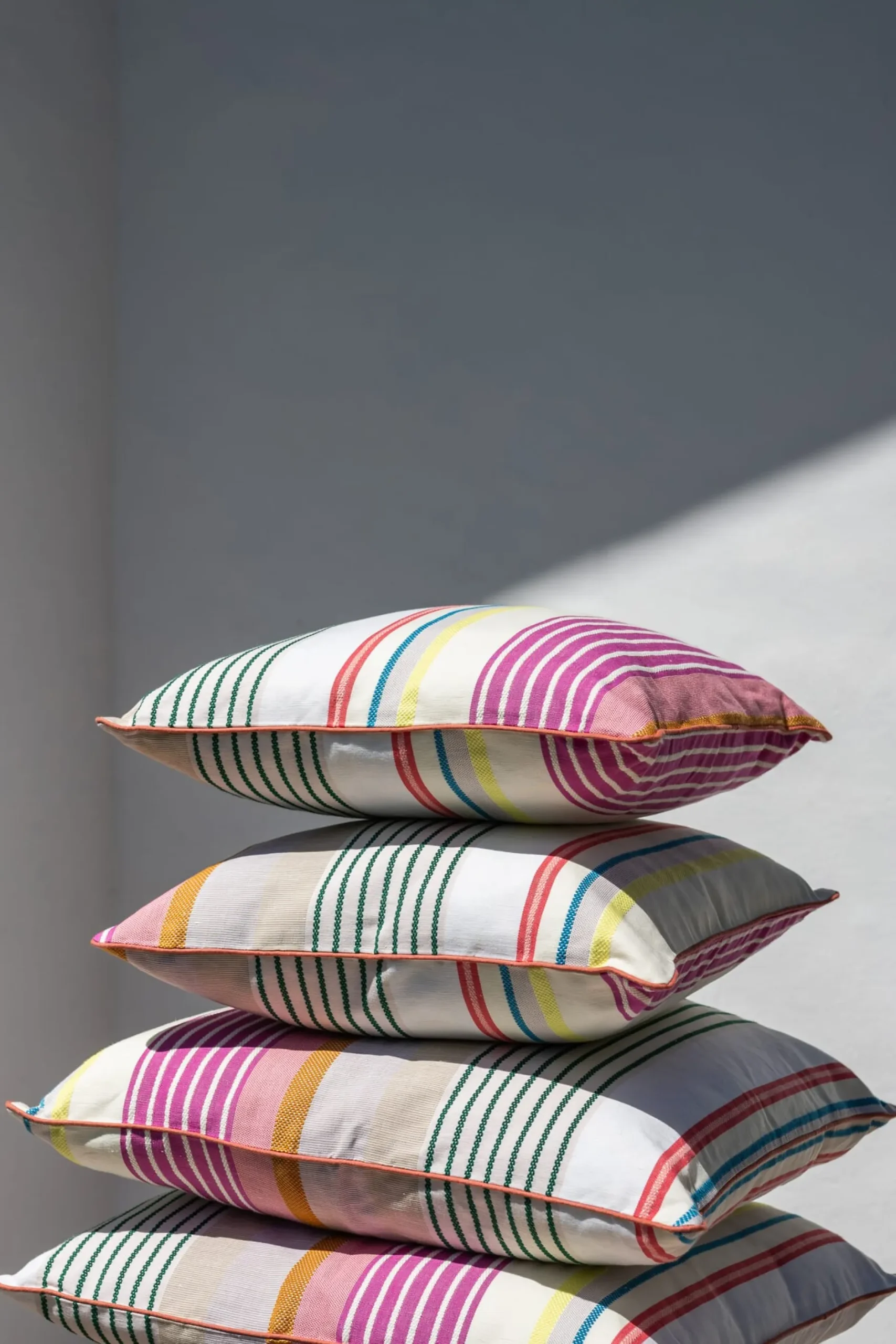 Die fröhlich bunten Streifen auf diesem Kissenbezug holen uns den Sommer in die Wohnung und auf die Terrasse und versetzen uns in richtig gute Laune. Die bleibt auch, wenn einmal etwas danebengeht, denn das Gewebe wird aus 60 Prozent kbA-Baumwolle und 40 Prozent strapazierbarem Leinen gefertigt und darf in die 60-Grad-Wäsche. Und falls Sie wie wir gar nicht genug von den farbigen Streifen bekommen können: Wir bieten auch ein Tischset und einen Tischläufer aus dem bunten Stoff an. Die Streifen sind übrigens eingewebt – Garant für langes Strahlen und langer Freude daran.