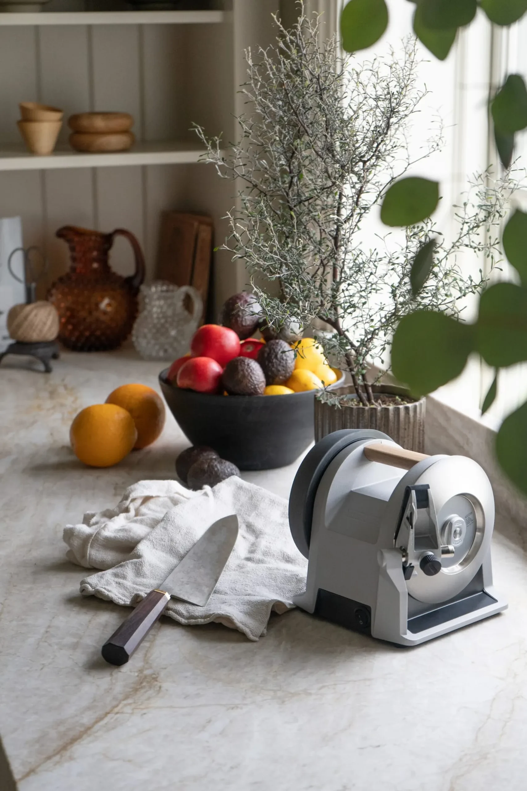 Entwickelt für all die Köch*innen, die nicht nur Wert auf hochwertige Messer legen, sondern denen die Pflege der Ausrüstung am Herzen liegt. Die T-1 von Tormek ist bildschön, kompakt genug, um in der privaten Küche nicht im Weg zu stehen und sie ist einfach zu bedienen – mit professionellem Ergebnis. Die kleine, formschöne und laufruhige Maschine vom renommierten Spezialhersteller sorgt mit der Möglichkeit, den Schleifwinkel individuell einzustellen, für perfekten Schliff.