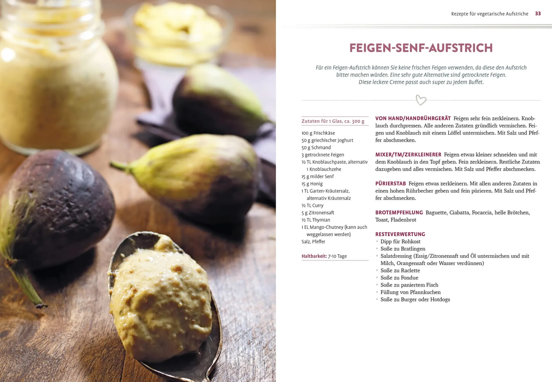 Kein Brot ohne Aufstrich! Ob vegan, veggie, mit Fisch, süß oder wunderschön angerichtete Butter Boards (der neuste Foodtrend erstmals in einem Buch) – in diesem Rezeptebuch mit über 60 Rezepten finden Sie eine riesige Auswahl an selbstkreierten Brotaufstrichen für jeden Geschmack und jeden Tag. Bestsellerautorin Valesa Schell gibt zudem zu jedem Rezept eine Brotempfehlung und viele Tipps, wie man die Aufstriche (& -reste) weiterverwerten kann wie Pastasoßen, Dips oder Flammkuchen-Streiche. Als nützliches Extra finden Sie im Buch außerdem viele Anleitungen für die veganen Grundlagen wie Käse, Jogurt etc., mit denen im nächsten Schritt schmackhafte vegane Aufstriche kreiert werden können.