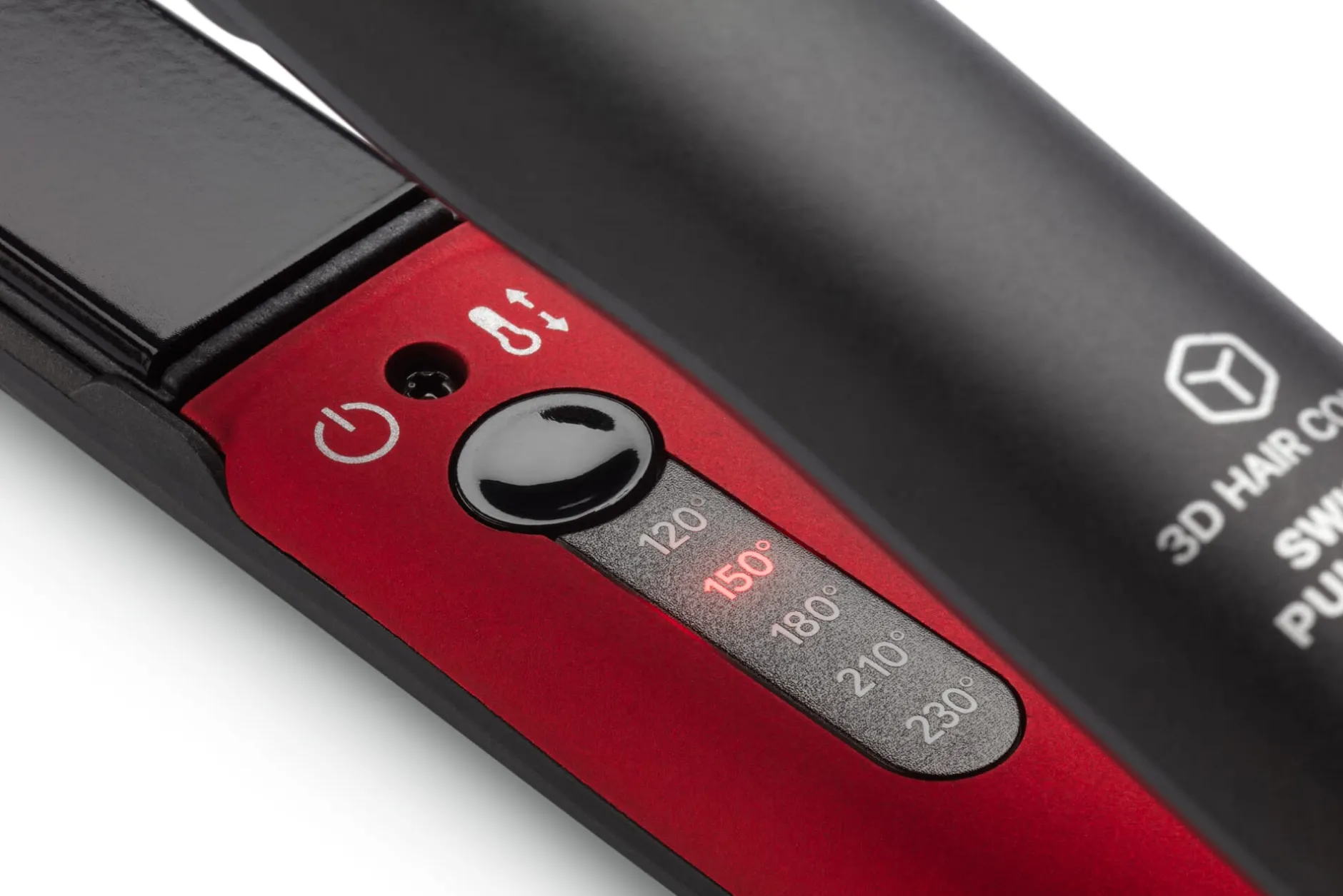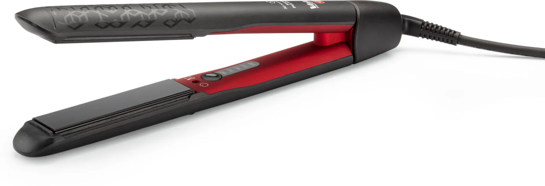 Gehäuse aus glasfaserverstärktem Kunststoff (Polybutylenterephthalat, 30% Glasfaser). Glättplatten (L 9 × B2,5 cm) 5-fach beschichtet mit Keramik mit Turmalin. Temperaturregulierung in 5 Stufen von 120 °C bis 230 °C. Leistung 40–164 W. Gehäuse L 27 cm, Ø 3,5 cm. Gewicht 420 g. Kabellänge 3 m. Eurostecker. Mit einer wärmeisolierenden Silikon-Schutzkappe und Tasche. Hergestellt in der Schweiz.