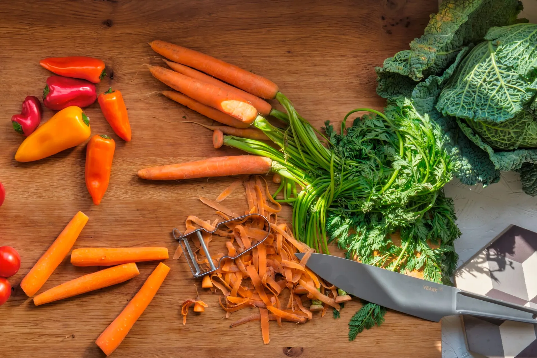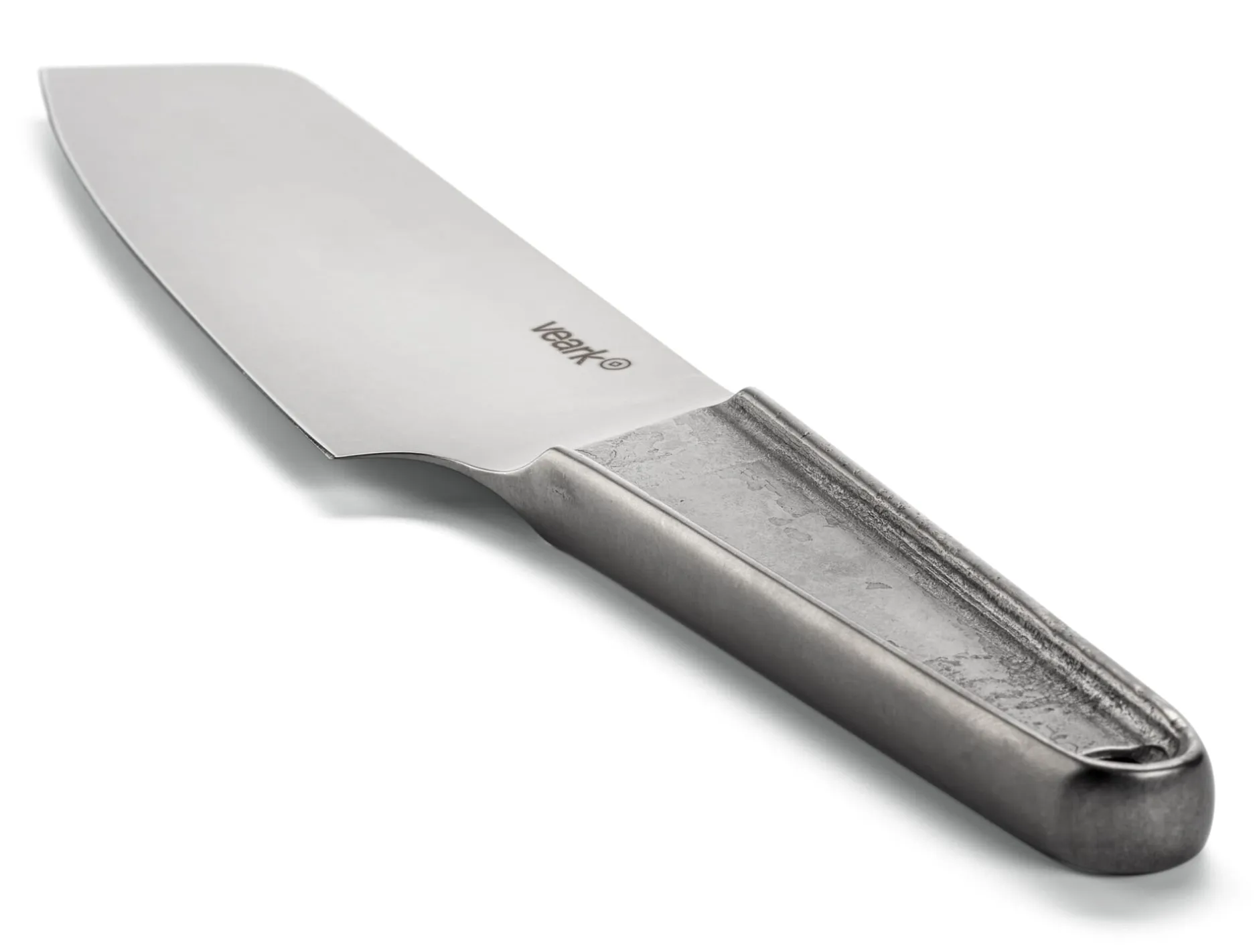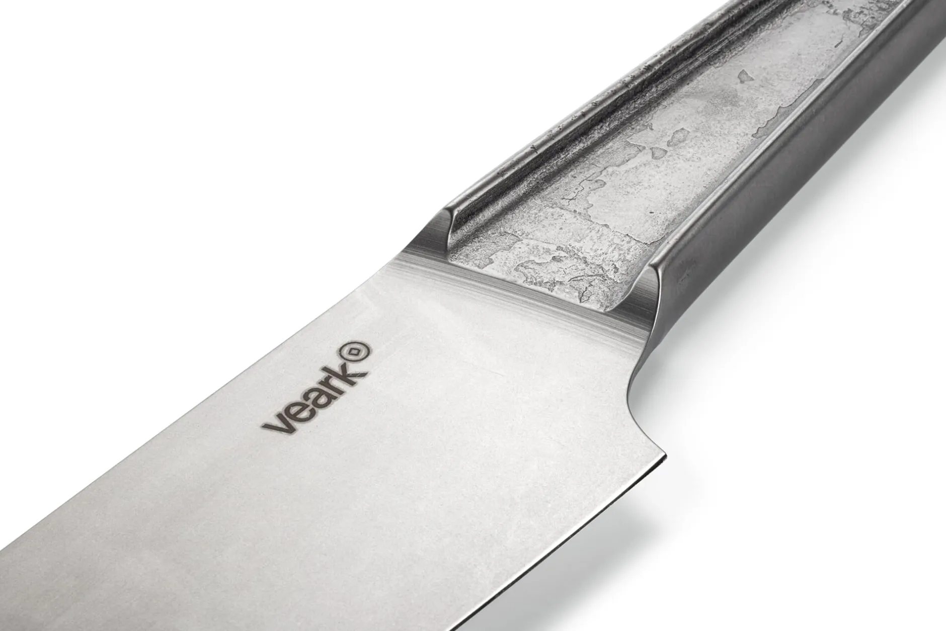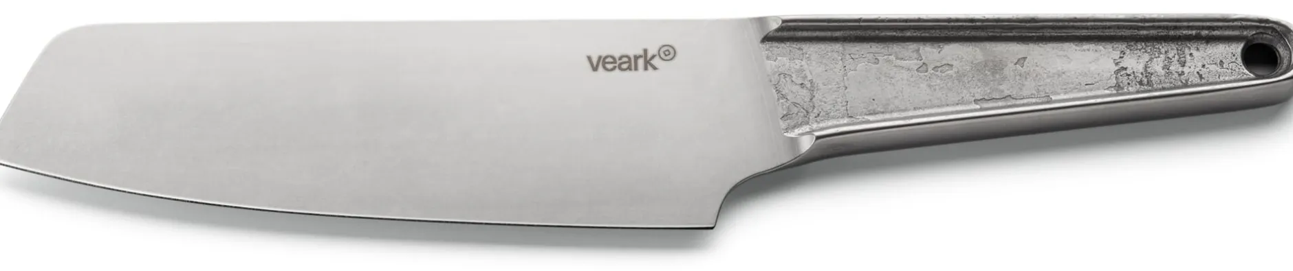 Bildschöne Werkzeuge – beste Arbeitsgeräte. In der Tradition geschmiedeter Metallwerkzeuge. Die Messer von VEARK besitzen eine überzeugende Ästhetik und stehen in ihrer Qualität ihrer Optik nicht nach. Die in Dänemark entworfenen und als Monoblock konstruierten Messer werden in Solingen aus bestem Klingenstahl gesenkgeschmiedet. Dieser Stahl besteht aus den Legierungsbestandteilen Kohlenstoff, Chrom, Molybdän und Vanadium. Das macht die Messer im hohen Maße beständig gegen Korrosion und vor allem lassen sie sich besser und schärfer schleifen, denn sie besitzen eine für Messerstahl überdurchschnittliche Härte von 58 Rockwell. Das bedeutet: Ein härteres Messer kann schärfer geschliffen werden und die geschliffene Klinge hält länger. Damit bleibt die sogenannte Schnitthaltigkeit länger erhalten. Die Messer von VEARK liegen ausgewogen in der Hand, dank ihrer Symmetrie Rechts- und Linkshändern gleichermaßen. Die rohlinghaften, markanten Griffteile haben nicht nur eine einzigartige, industrielle Ästhetik, sondern lassen sich auch gut greifen und handhaben. Schönes Detail: Das Schmiedeverfahren hinterlässt ein individuelles Muster auf dem Griff und macht jedes Messer zum Unikat.