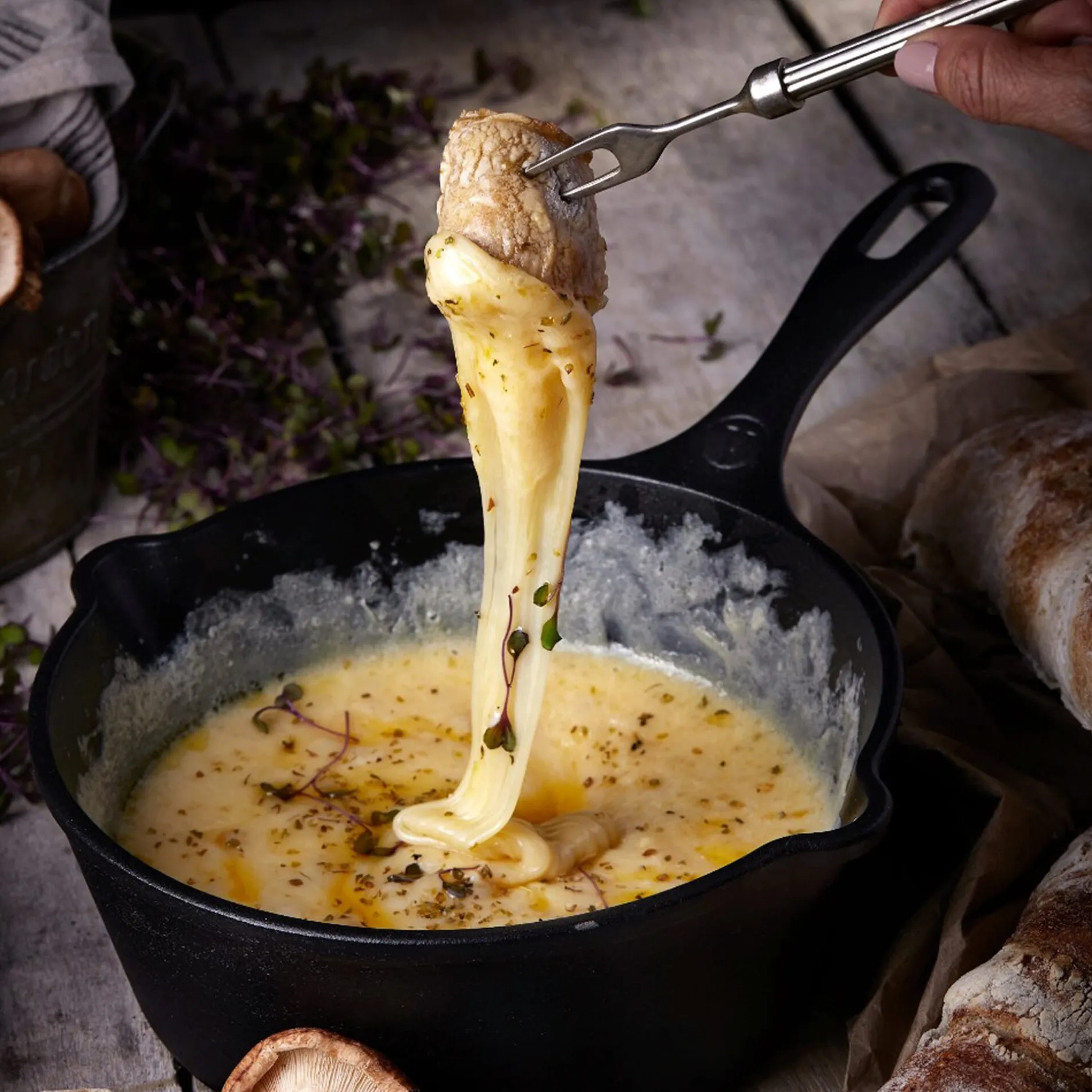Der hat Ihnen gerade noch gefehlt. Nein, wirklich. Das meinen wir ganz ernst. Ein kleiner, hochwandiger Stieltopf aus Gusseisen – für den Gebrauch auf dem Grill gedacht (aber auch für Gas- und Elektroherd geeignet). So manches Grillgericht verlangt schließlich nach einer schmackhaften Sauce als Dreingabe. Denken Sie an mit Portwein abgelöschte Schalotten zu Lammfleisch oder, wenn es um gegrillte Desserts geht, an Vanillesauce zu gefüllten Bratäpfeln. Und ein absolutes Highlight: Chäsfondue vom Grill! Denn sogar Fonduekäse können Sie in diesem Topf auf dem Feuer schmelzen. Da die gusseisernen Oberflächen zum Schutz vor Korrosion mit einer hauchdünnen Emailleschicht versehen sind, eignet sich das Gefäß auch zum Erwärmen von säurehaltigen Marinaden, Glasuren und BBQ-Saucen mit Essig oder Tomate.