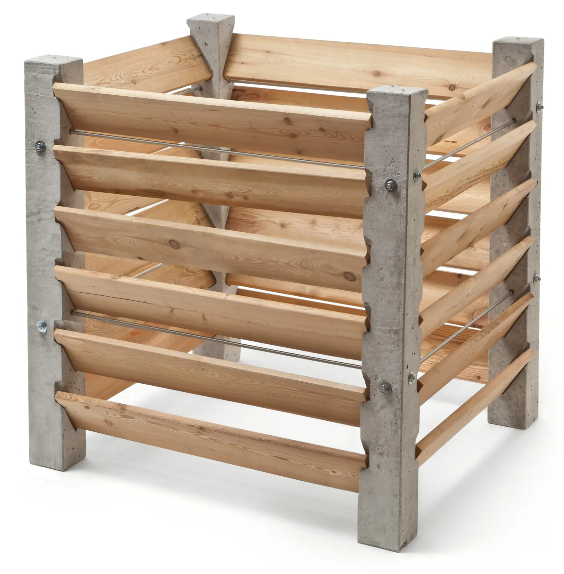Stahlarmierter Beton und Nordische Kiefer. Kompostkiste