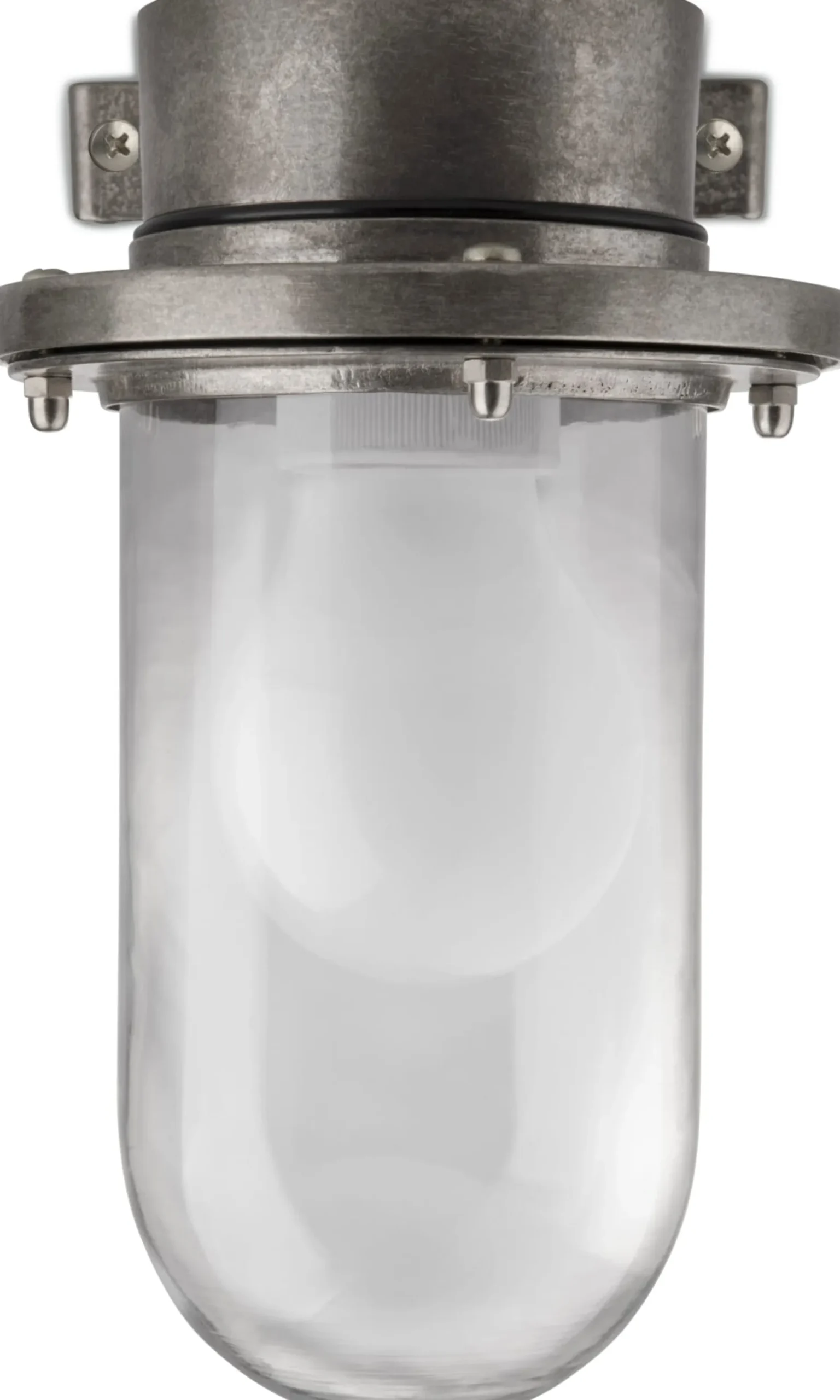 Universal einsetzbare Wand- und Deckenleuchte: NAUTICO des belgischen Herstellers Zangra hat einen Glasschirm und einen Sockel aus vernickeltem Messing. Diese Beschichtung schützt die Leuchte zuverlässig vor Anlaufen und Korrosion – auch in feuchten Umgebungen. Mit Schutzart IP64 ist sie staub- und spritzwassergeschützt und damit perfekt für Außenbereiche geeignet.