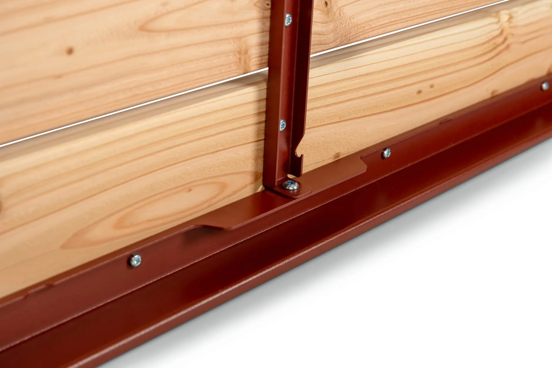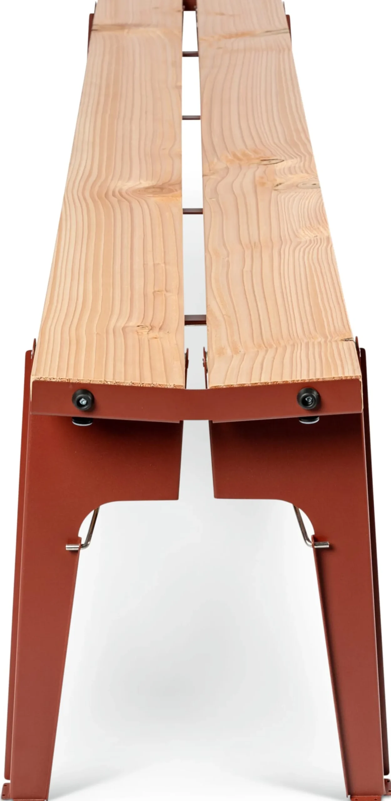 Material: Stahl, pulverbeschichtet (RAL 3009 Oxidrot); Lärche (Herkunft: Polen)
