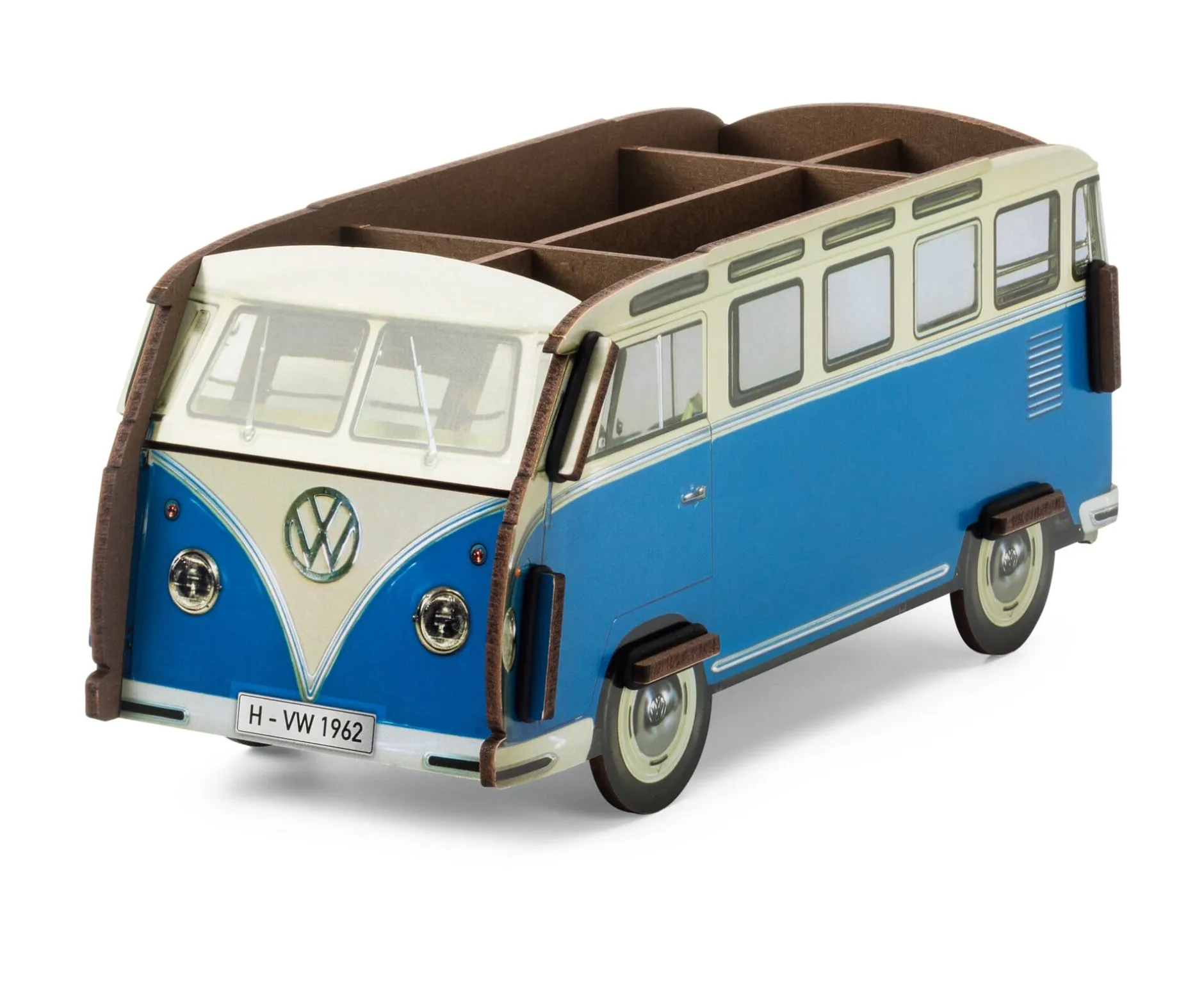 Kleiner als die Truhenhocker gleicher Gestaltung, aber deshalb nicht weniger praktisch: Die Stifteboxen von Werkhaus – als Tier oder in Form eines legendären Fahrzeugmodells. Neben Stiften und Büroutensilien findet hier auch allerhand anderer Kleinkram (wie etwa Werkzeug) Platz.