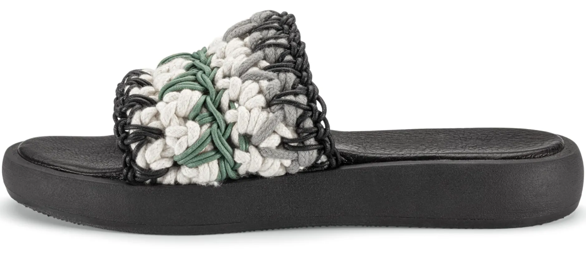Die Besonderheit dieser Pantolette ist das Band, das um den Fußrücken geführt wird: Es ist aus italienischen Schnürsenkeln gehäkelt, die aus reiner, hautsympathischer Baumwolle bestehen. Durch das Maschenwerk ist es einerseits luftig und andererseits passt es sich perfekt der individuellen Fußform an. Die starke, leicht geriffelte Sohle aus thermoplastischem Gummi bietet nicht nur Grip auf vielen Untergründen, sie wirkt auch trittdämpfend, was die Pantolette in Verbindung mit der gepolsterten Lederdecksohle sehr bequem macht.