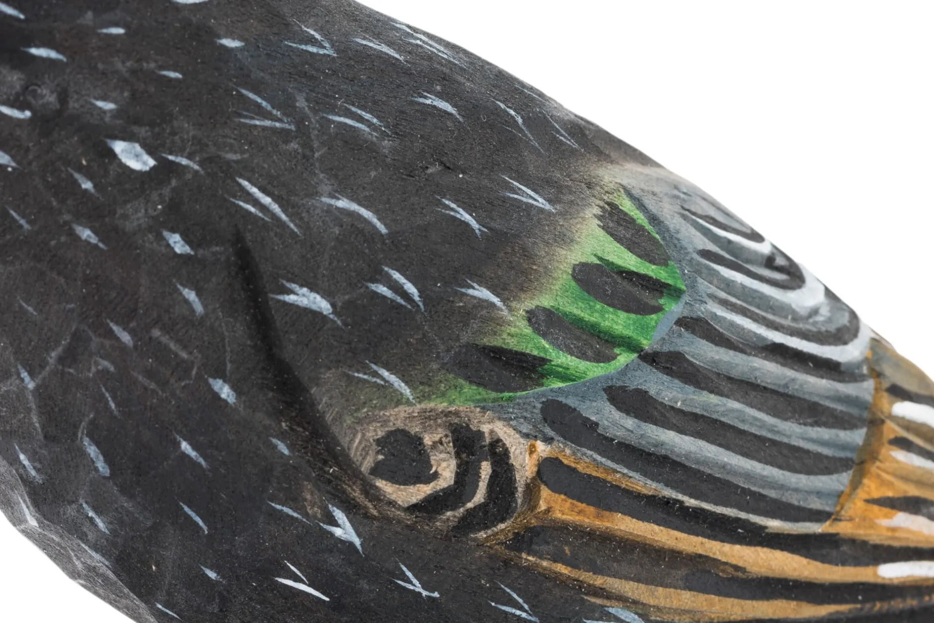 Der Star ist vom NABU zum Vogel des Jahres 2018 ernannt worden. Für seine Talente ist der schwarze Vogel berühmt, kann er doch Umgebungsgeräusche und den Gesang anderer Gefiederter in seine eigene Melodie einbauen. Zu hören sind dann manchmal sogar Klingeltöne, Hundebellen oder der Sound von Alarmanlagen. Genauso ist der Star ein Formationskünstler, denn er kann sich in großen Verbänden mit bis zu Hunderttausend Artgenossen am Himmel bewegen. Wie vielen anderen Wildtieren fehlt es ihm inzwischen jedoch an geeignetem Lebensraum mit Brutmöglichkeiten und ausreichend Nahrung, sodass die Starenbestände in Deutschland seit Jahren rückläufig sind. Somit erinnert dieser handgeschnitzte Vogel aus Lindenholz wohl auch daran, welche Bedeutung dem Vogelschutz bei uns mittlerweile zukommt.