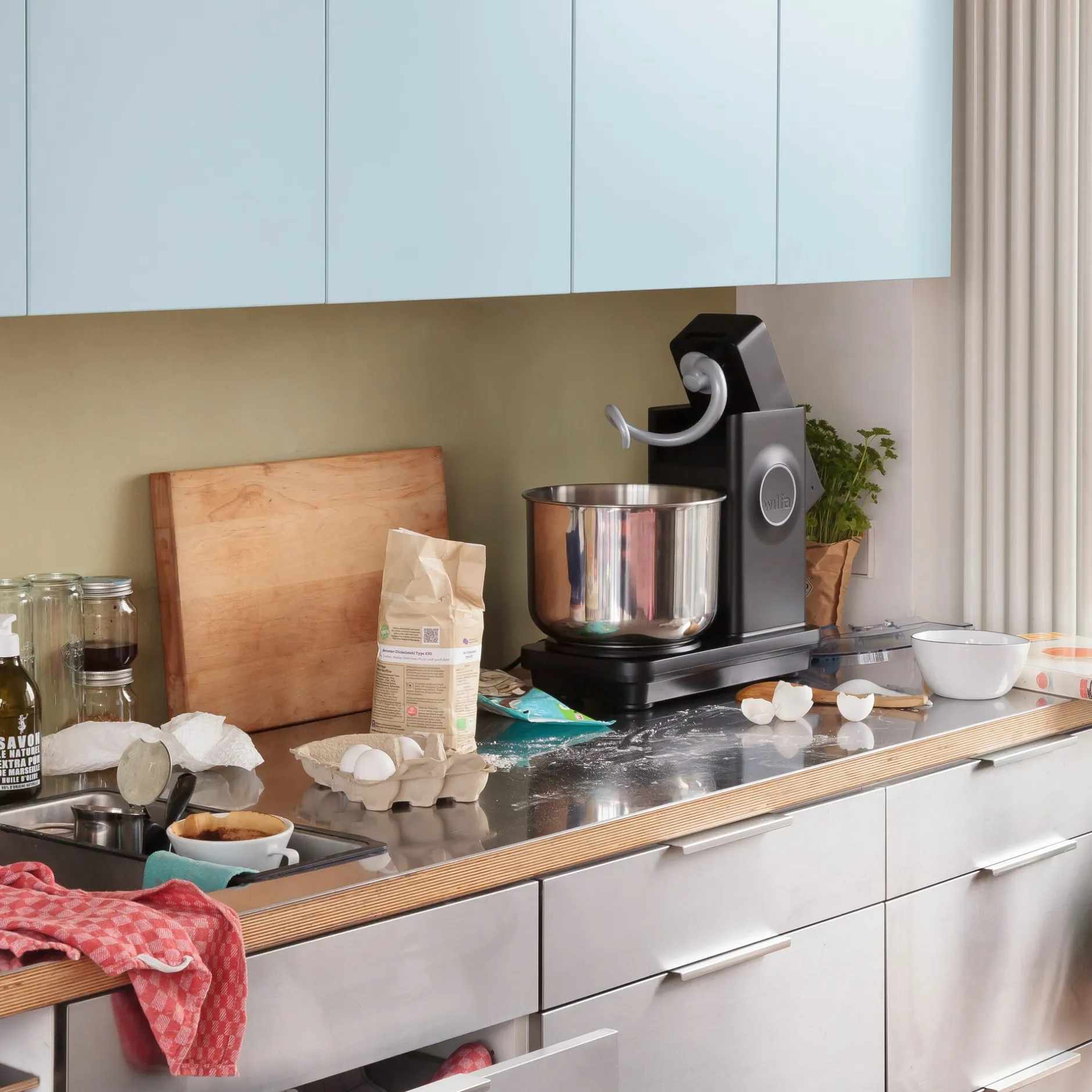 Bildschöne Maschine für den privaten Gebrauch, ausgestattet mit professioneller Technik. Die PROBAKER wurde in Zusammenarbeit mit der norwegischen Bäcker- und Konditorinnung entwickelt. Basierend auf dem Spiralknetsystem von Industriemaschinen, bei denen sich Schüssel und Knethaken gleichzeitig, aber mit unterschiedlicher Geschwindigkeit drehen, liefert die Maschine eine optimale Knetleistung. Zusammen mit dem speziell entworfenen Spiralknethaken aus keramikbeschichtetem Aluminium wird das Hochklettern des Teiges während des Knetvorgangs verhindert, ein zusätzlicher Teigbrecher wird nicht benötigt. Der neu entwickelte Motortyp mit einer maximalen Leistung von 700 Watt sorgt für effiziente Kraftübertragung bei Nutzung eines breiten Drehzahlbereichs. Mit 20 individuell einstellbaren Geschwindigkeitsstufen deckt PROBAKER jeden Arbeitsschritt ab: Vom langsamen Einrühren leichterer Teige ab 250g bis zum Kneten von schwereren Brot- oder Pizzateigen bis 5 Kg, mischt sie Zutaten außerordentlich effizient und kommt schnell ans Ziel. Im Gehäuse aus Aluminiumdruckguss sind Motor und Getriebe bewusst tief platziert. Der niedrige Schwerpunkt sorgt für gute Standsicherheit und hohe Laufruhe. So erledigt die Maschine auch bei Höchstgeschwindigkeit die Knetarbeiten leise und ohne schwerere Teige übermäßig zu erwärmen.
