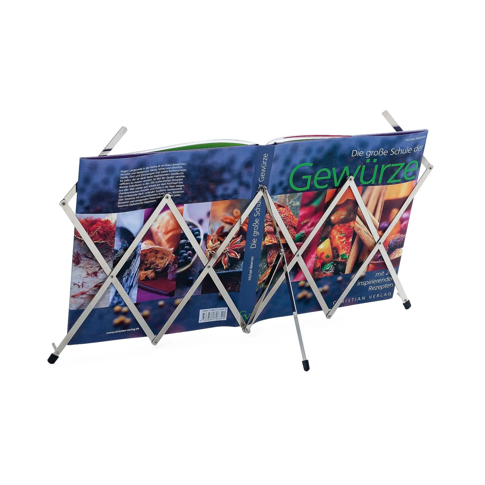 Angesichts des trivialen Zwecks, den sie zu erfüllen haben, kommen marktübliche Konzepthalter recht klobig daher und sind überdies häufig auf A4-Formate beschränkt. Die variable, faltbare, preisgünstige (und ansehnliche) Alternative kommt aus Süddeutschland. Das Scherenpult präsentiert neben A4-Hoch- und -Querformaten aufgeschlagene A4-Hefte und A3-Querformate.