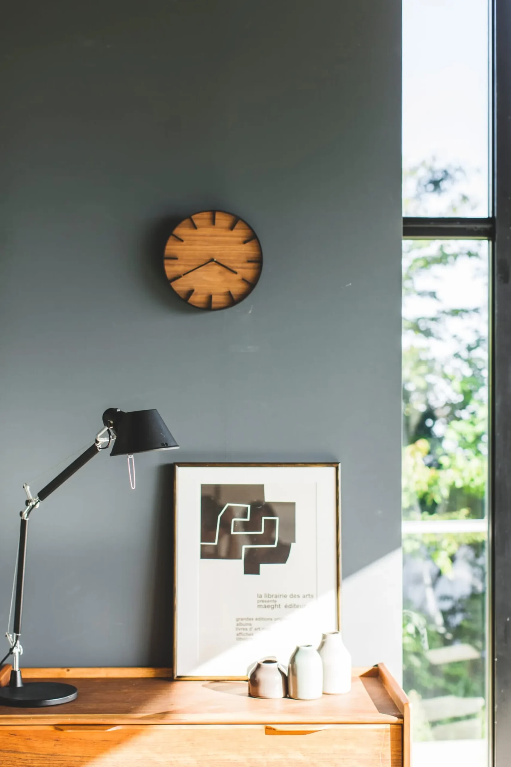 Feingliedrige Wanduhr in ungewöhnlicher Materialkombination. Das Gehäuse, Stundenmarkierungen und Zeiger sind aus Stahl gefertigt, das Ziffernblatt besteht aus einer feinen Furnierlage Walnuss oder Esche. Mit leise tickendem Quarzuhrwerk für 1 Batterie im Format AA (nicht im Lieferumfang enthalten).